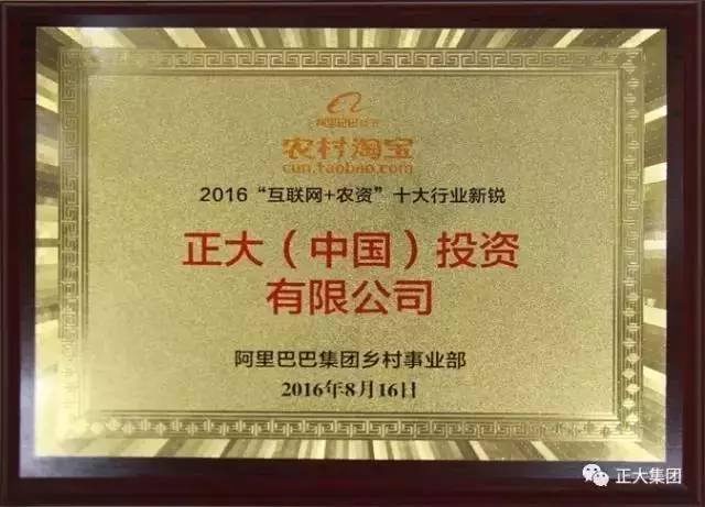 ▲正大集團(tuán)榮獲2016“互聯(lián)網(wǎng) 農(nóng)資”十大行業(yè)新銳