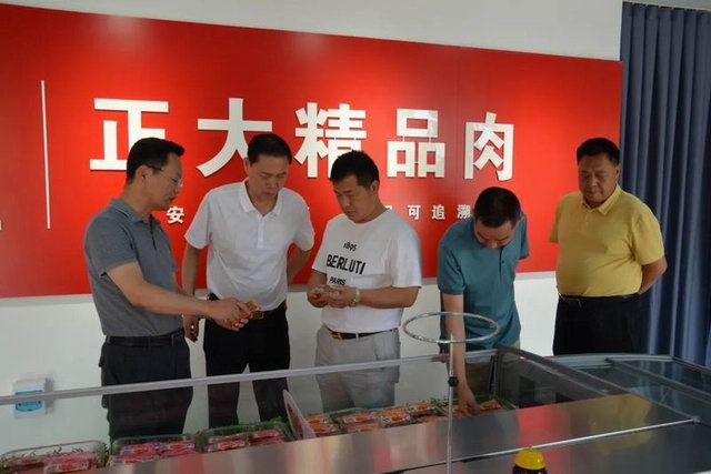 劉長河會長一行首先通過參觀走廊參觀了洛陽正大生豬屠宰、分割加工、肉類食品深加工生產(chǎn)線及產(chǎn)品體驗(yàn)中心,參觀結(jié)束后到公司三樓會議室進(jìn)行交流座談。